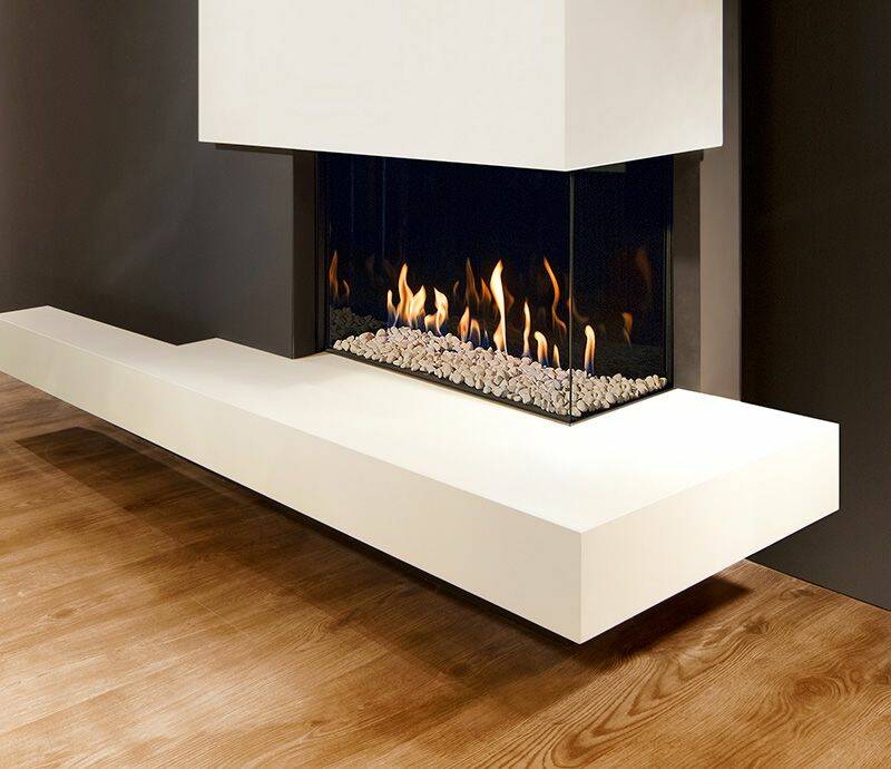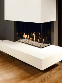 Navnet sier det selv: en lukket gasspeis med rammeløst glass på tre sider. Flammene er kun omgitt av glass, noe som gir utsikt til flammene fra tre sider.